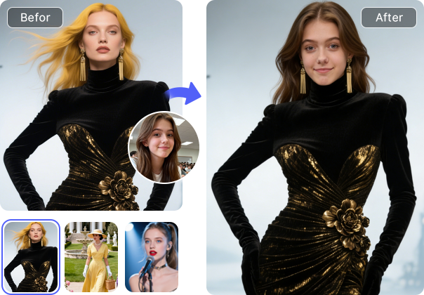 Instantly transform your look and explore endless possibilities with a single face swap.